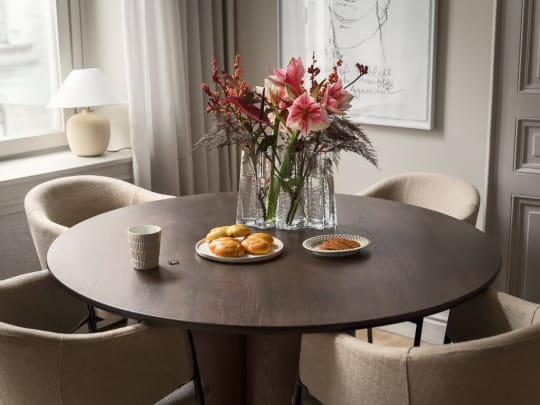 Tillverkat av högkvalitativ ekfanér med MDF, har detta matbord en brunbetsad och mattlackad yta som ger en tidlös och naturlig känsla. Den brunbetsade färgen har en djup och elegant look som enkelt kombineras med massor av olika matstolar. Varför inte matcha bordet med vår fina stol Colin? Detta matbord är perfekt för dig som älskar att inreda med stil och kvalitet. Med sin eleganta design och tidlösa material kommer Laura att bli en praktisk och dekorativ möbel i ditt hem.